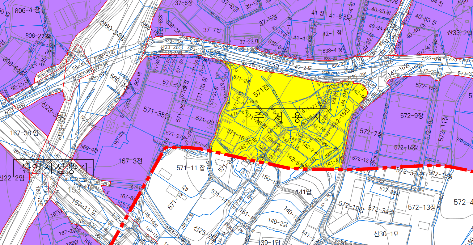 주거용지로 지정이 되었고 이는 앞으로 주거용 건축물 위주의 인허가만 하겠다는 의미입니다. 현재 주변 현황은 공장과 고물상등으로 주거에는 부적합해 보이지만 인허가를 제한해서 주거용으로 바꿀 계획이라는 것이지요.