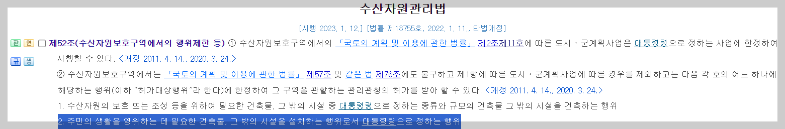 52조 2항 2조에 '대통령령'에 링크가 연결되어 있는데요. 상세내용 확인을 위해 클릭합니다.