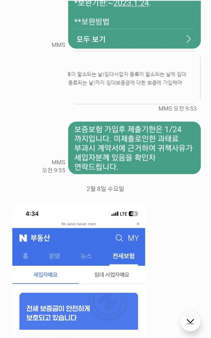 완전 진상까진 아니고 월세미납에 보증보험 미가입으로 속을 썩이던 세입자에게 어제 전화가 왔습니다. 집으로 통지문이 날아왔다며 이거 전세사기 아니냐고 다짜고짜 밀어붙입니다. 그럴 리 없다는 답변과 함께 어떤 통지문이냐고 물으니 보증보험 관련 내용이랍니다. 재미있는 것이 저는 최근 임대계약서 작성 시 보증보험은 세입자가 가입하는 것으로 특약을 넣습니다. 매번 따로 시간을 내서 보증보험 서류를 접수하는 것이 번거로워 비용은 좀 더 들더라도 시간을 아끼는 방법을 택했습니다. 이 건 역시 세입자가 직접 보험을 가입했는데 제게 전세사기를 운운하네요... 그래서 그 통지문을 사진 찍어 보내달라고 했더니 아침에 이런 문자를 보내왔습니다.