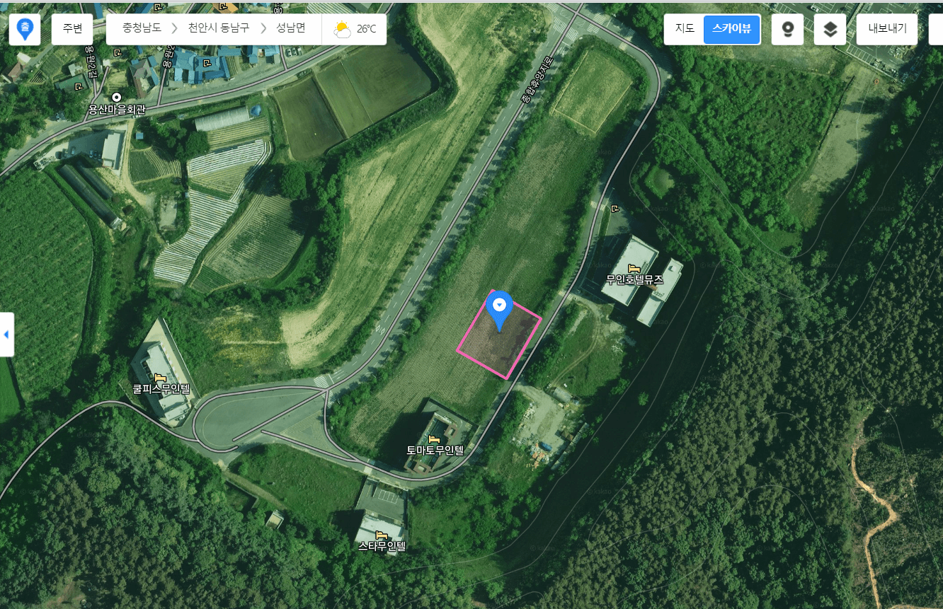 카카오맵은 2008년부터 제공되는 과거 위성사진을 연도별로 볼 수 있지만 정작 최근 사진은 가장 업데이트가 늦어요. 해당 지번에 건물의 흔적조차 없습니다.