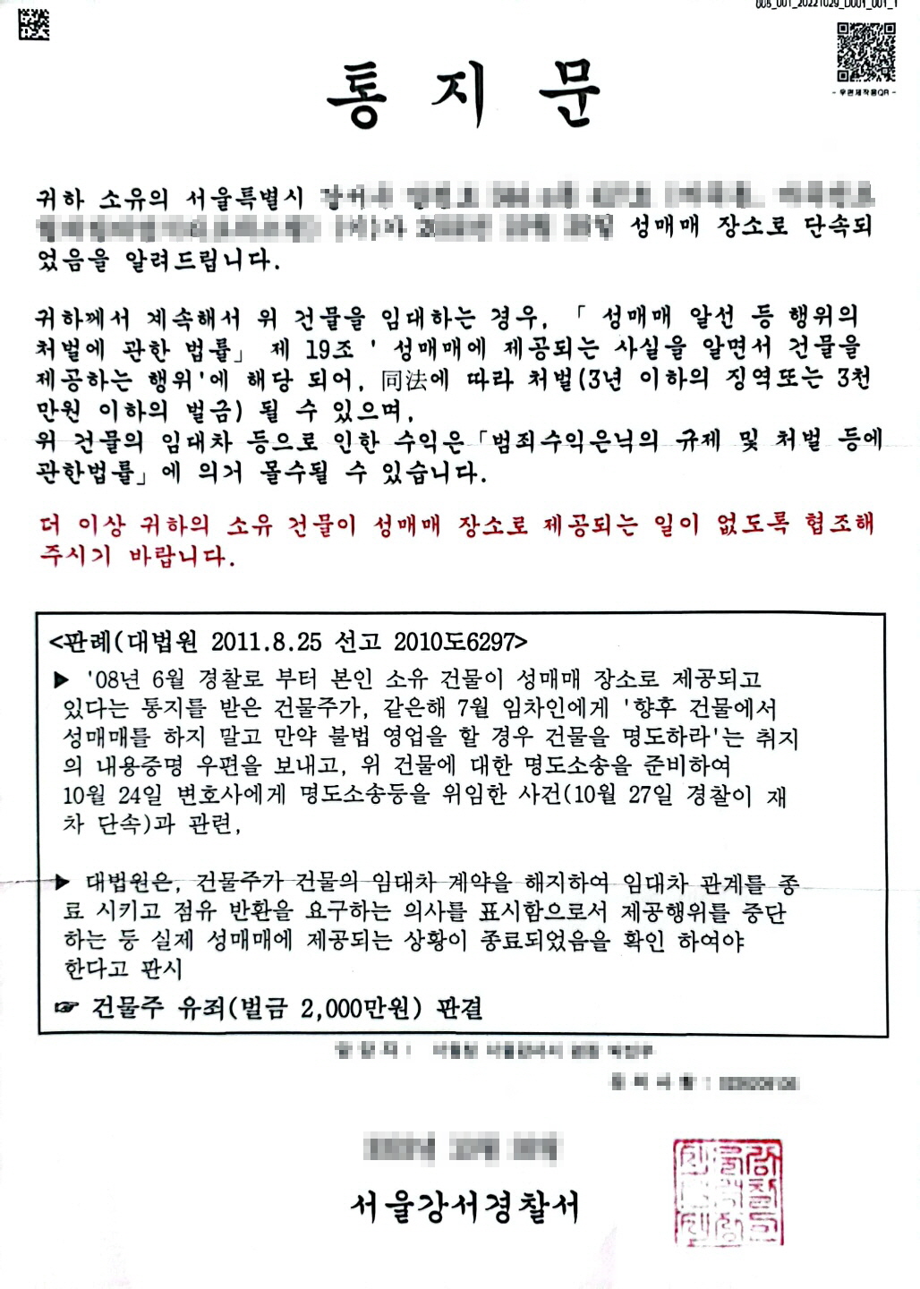 뭐 흔한 경우는 아니겠지만, 정리하자면 내가 임대하고 있는 오피스텔에서 불미스러운 일이 벌어졌고, 통지문이 도달되어 상황을 인지한 상태에서도 계속 임대할 경우 최대 3년 또는 3천만 원의 벌금과 임대수익까지 몰수할 수 있다는 골치 아픈 일이 터진 것이다.