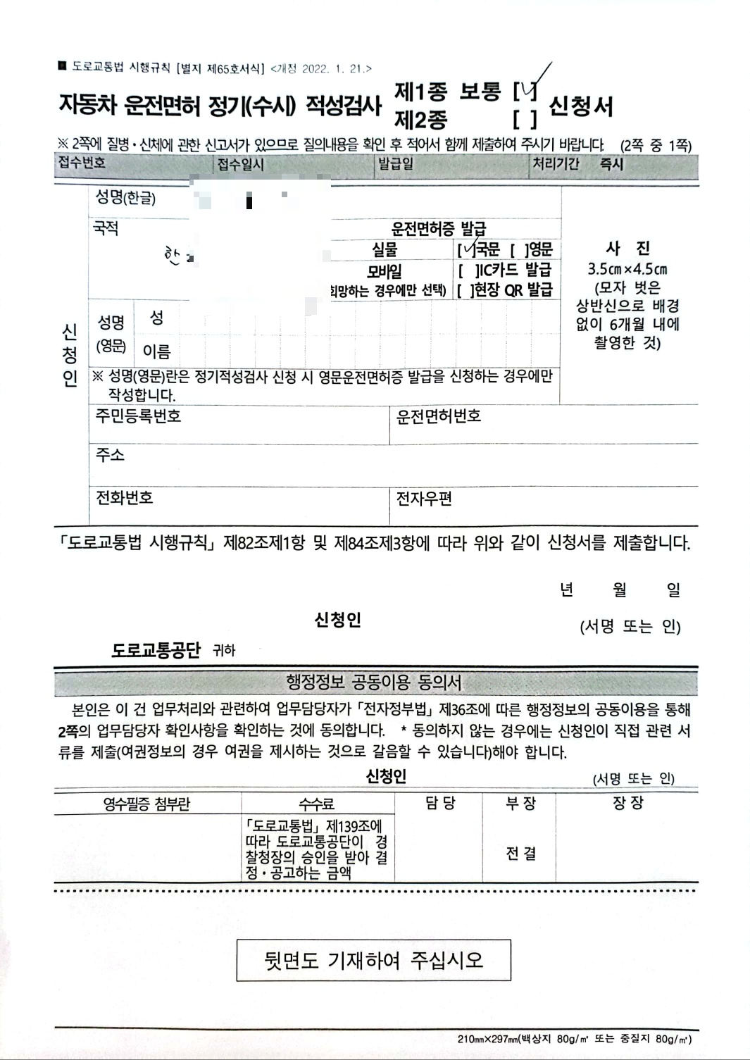 운전면허증은 현장에서 반납해야하고 갱신된 면허증은 대략 열흘정도 후에 받아볼 수 있다고 하네요.